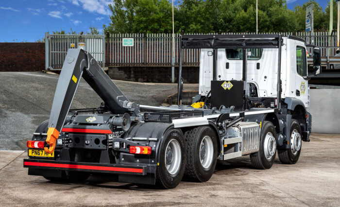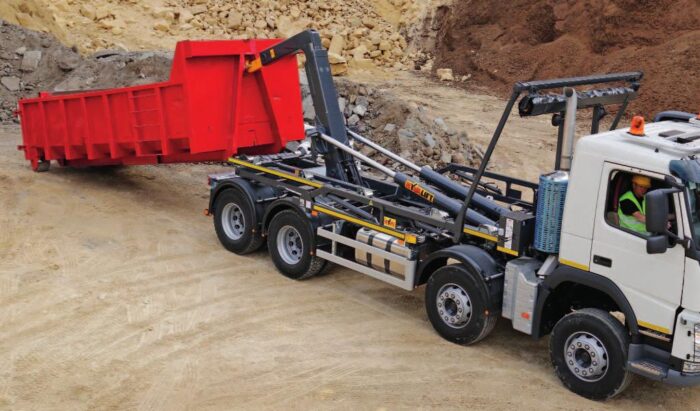 • Gancho con brazo telescópico para carga, descarga y volteo de contenedores