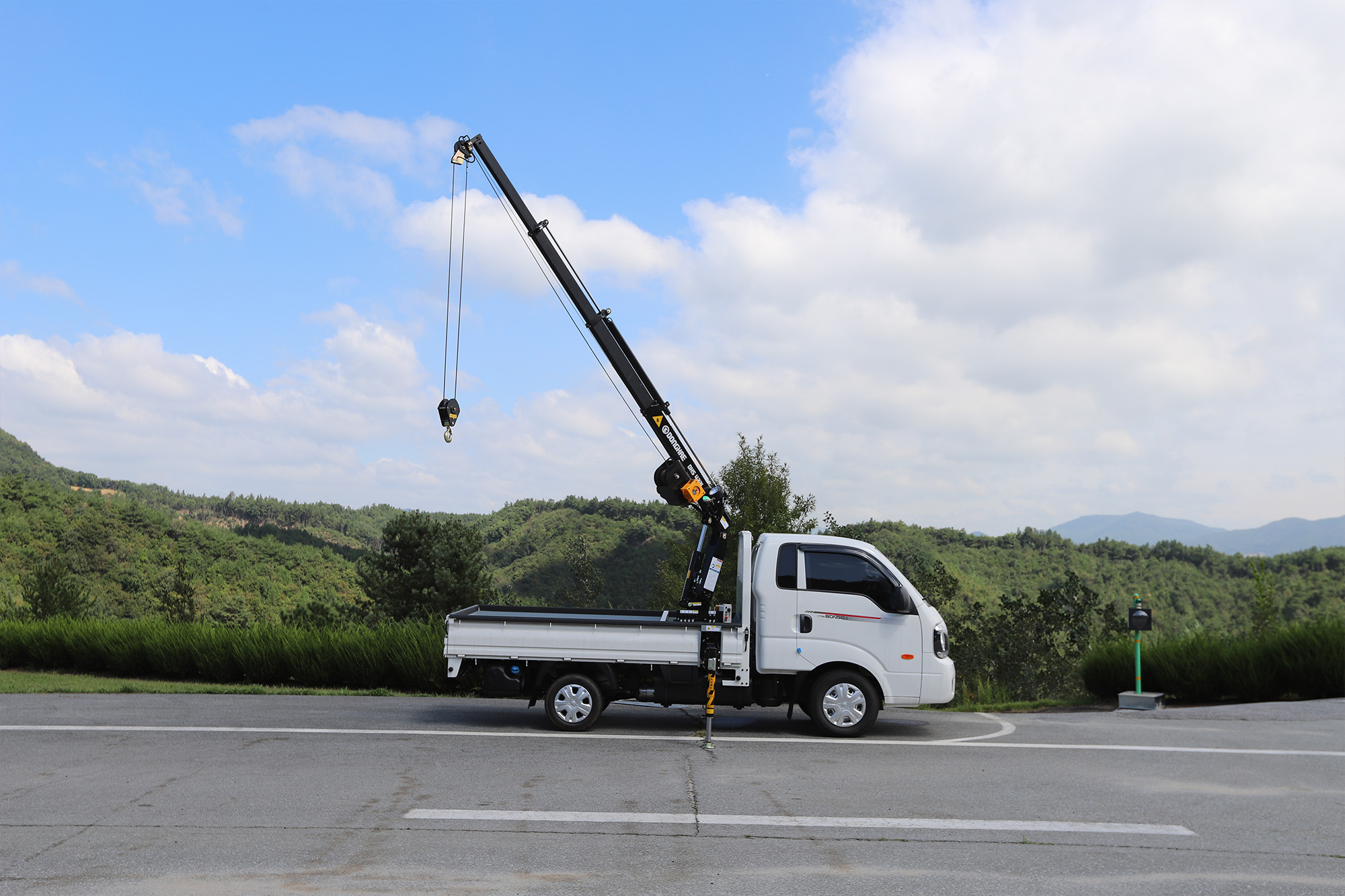 - Grúa hidráulica telescópica con 2 extensiones hidráulicas y 1 manual.