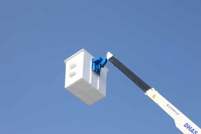 • Canastilla doble con capacidad de 200 kgs., para 2 operadores., montaje al final del brazo articulado.