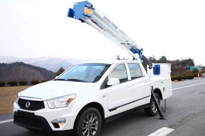 GRÚA HIDRÁULICA TELÉSCOPICA DE CANASTILLA NO AISLADA PARA VEHICULOS PEQUEÑOS.
