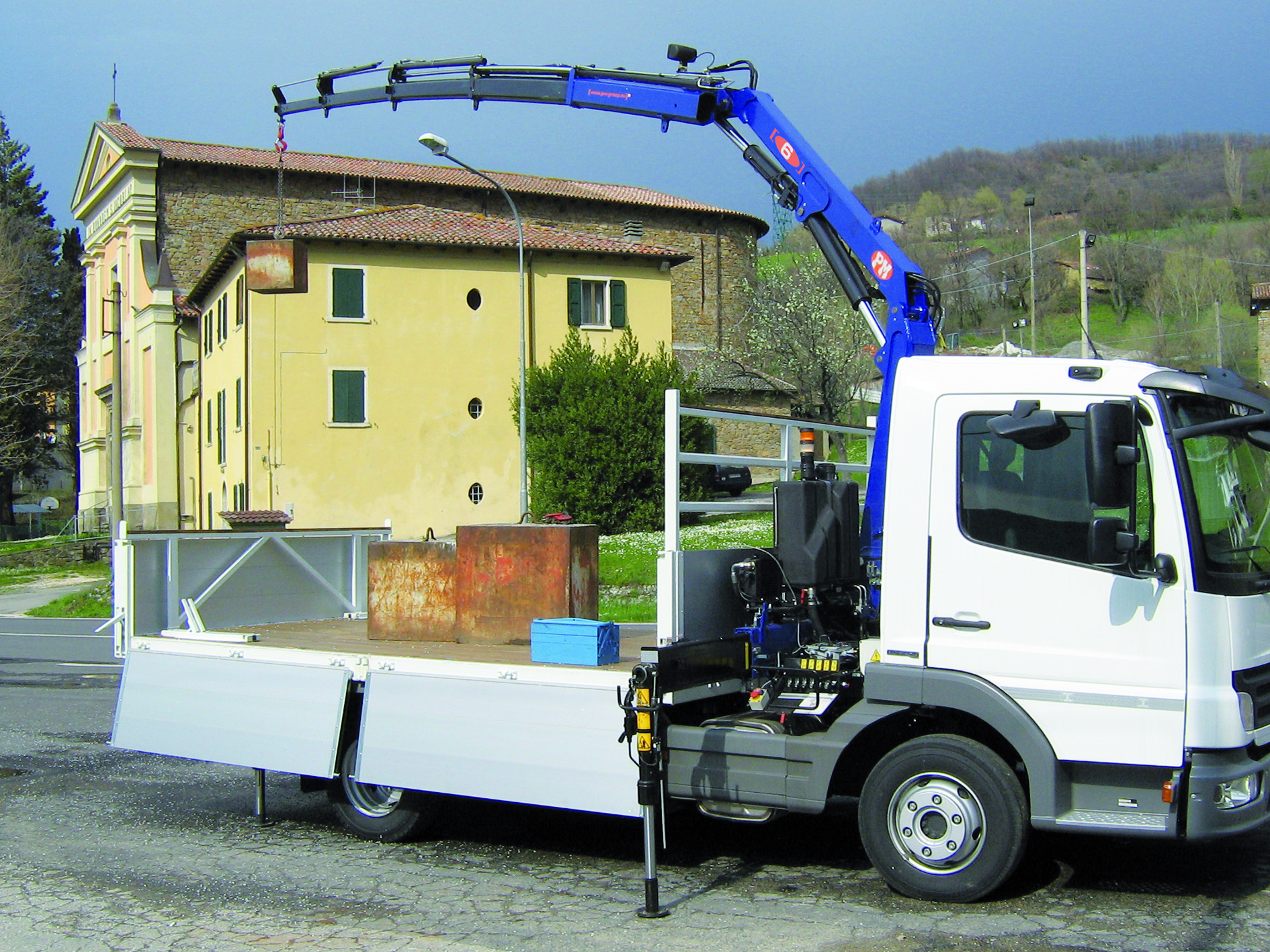 - Estabilizadores hidráulicos de apoyo extensibles manualmente y abatibles para una apertura de 3.30 mts.